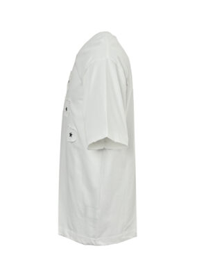 $1300 5面料:80支白色棉毛混纺,采用12支细针织法编织。罗纹领口,采用60支羊毛棉混纺面料(30%羊毛,70%棉)。…