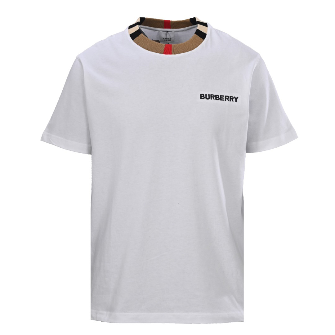 BURBERRY (BBR) Check Collar Embroidered Logo Short-Sleeve T-Shirt
