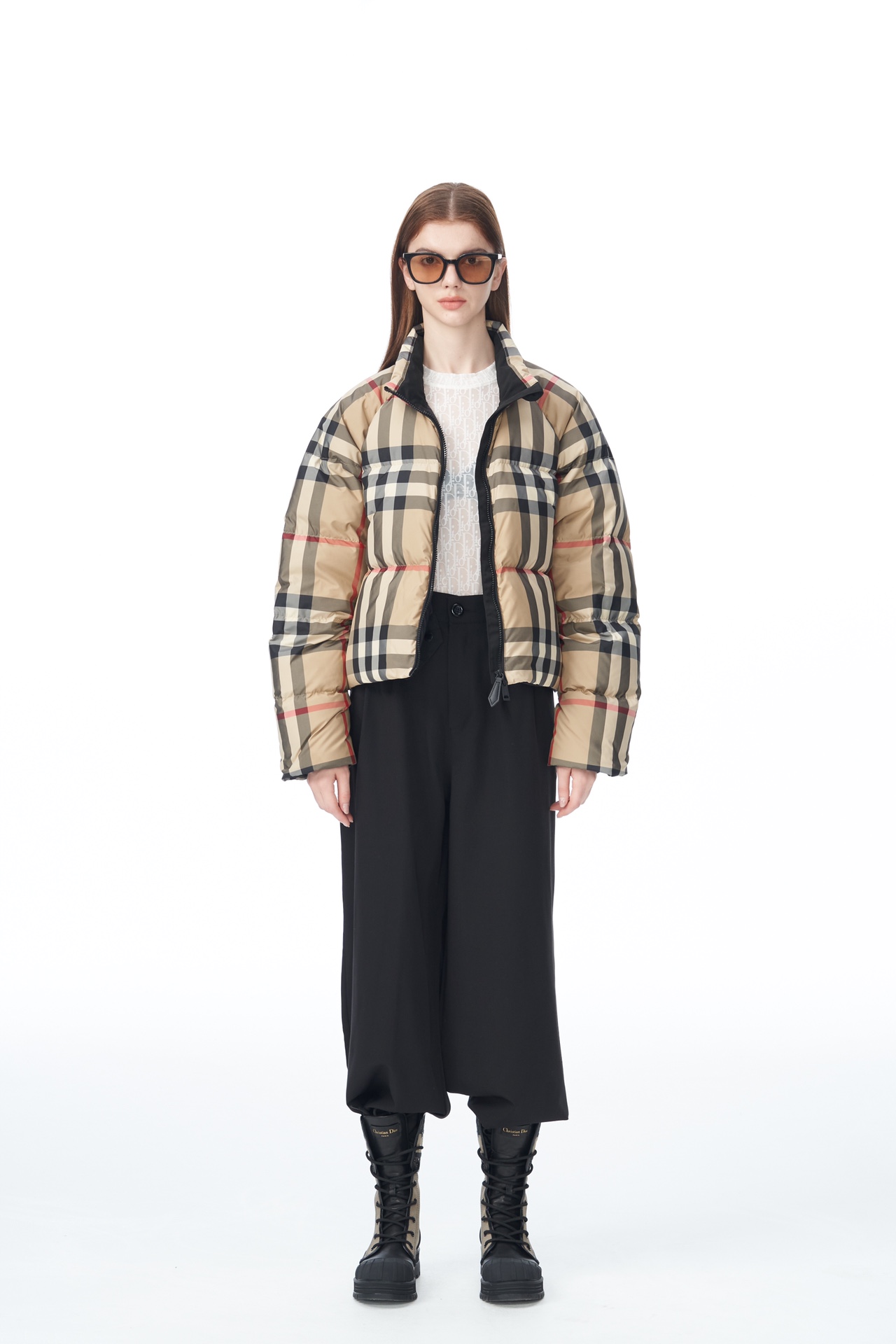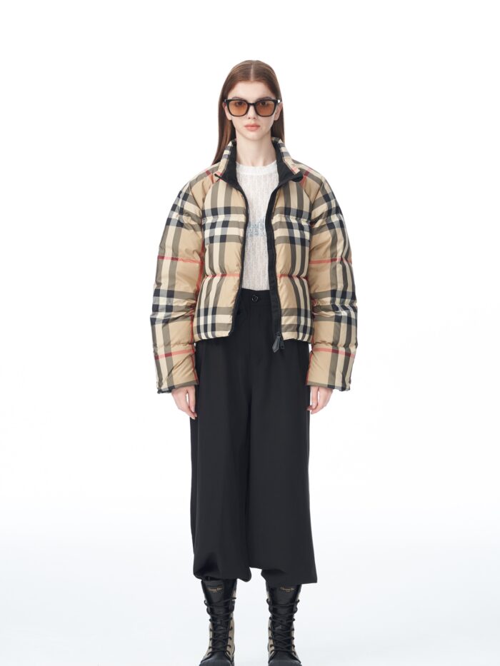 Filled with 90% down, using the finest down feathers, it boasts exceptional fullness and warmth! Made from high-twist, high-density 100% polyester fiber, it features a diamond-pattern design to further ensure the overall fullness and loft of every gram of down. The stand-up collar with zipper detailing is simple, sleek, and stylish. The workmanship is meticulous, and it includes two zippered pockets that offer ample storage.