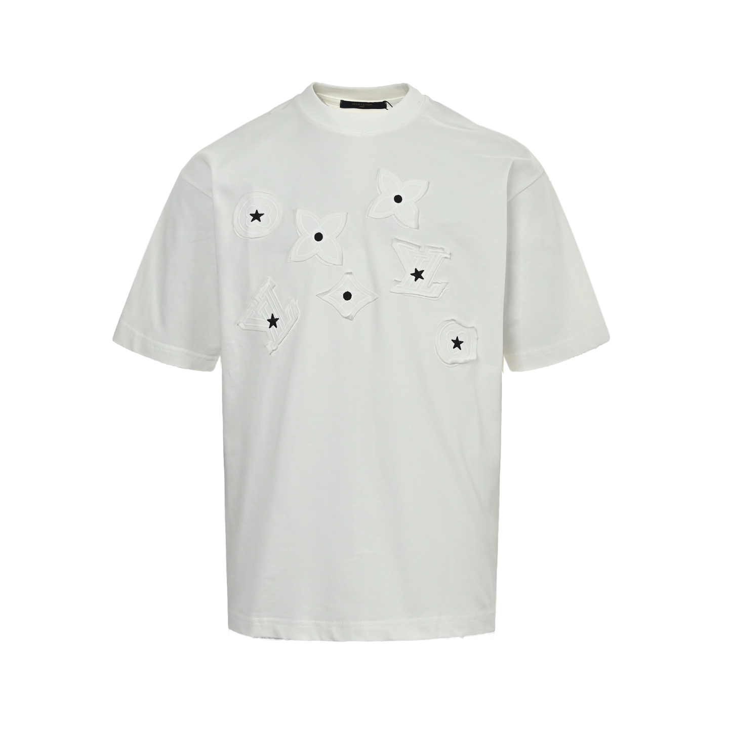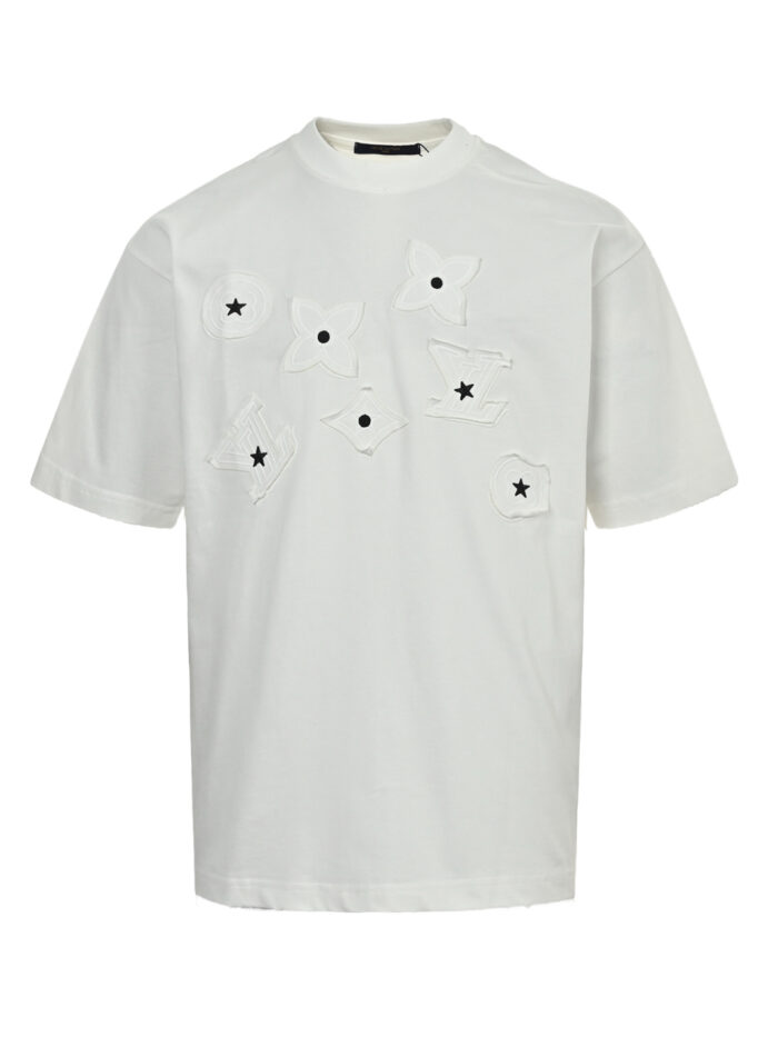 是第一个审查"Louis Vuitton monogram appliqué embroidered short-sleeved shirt"