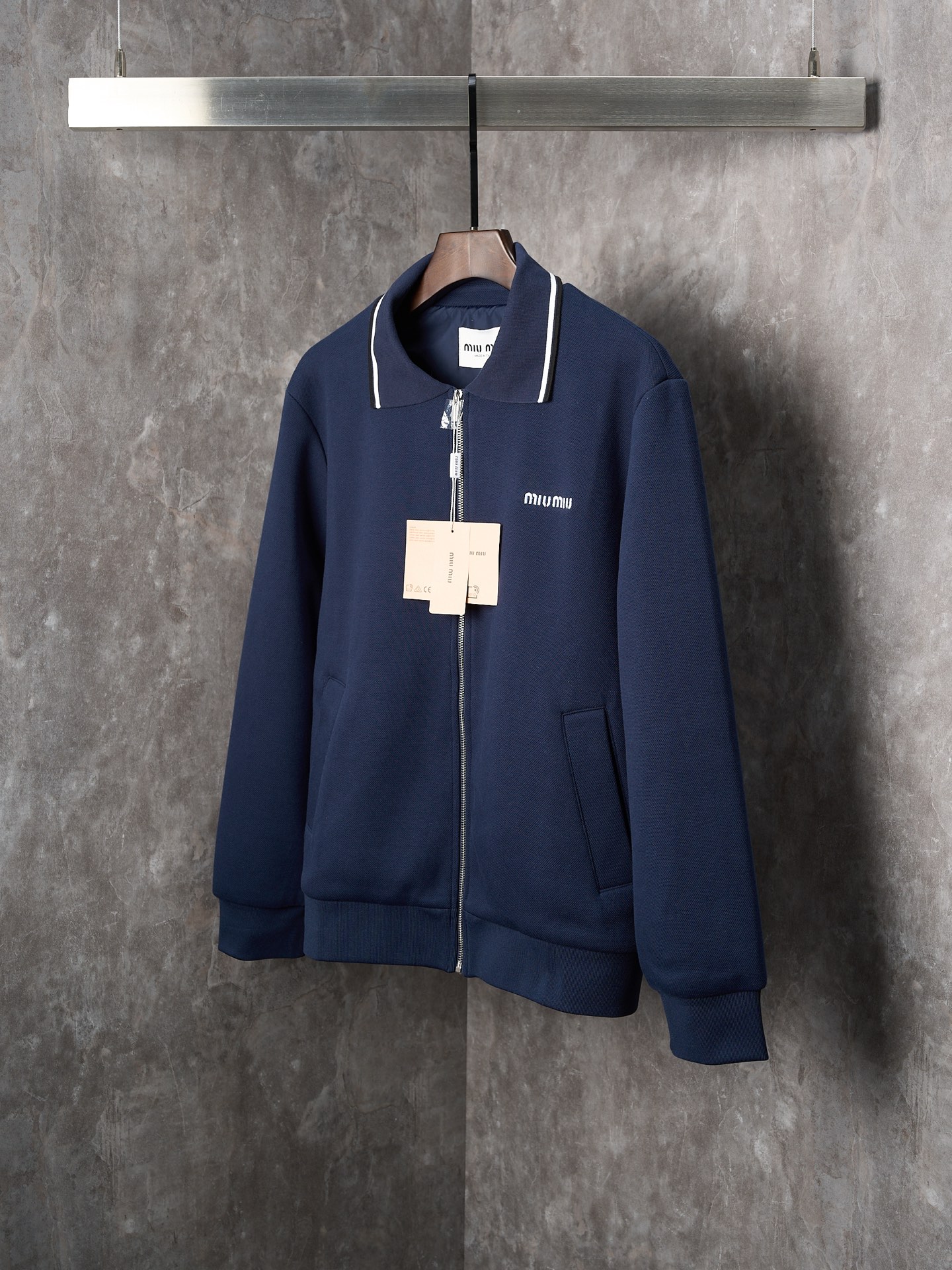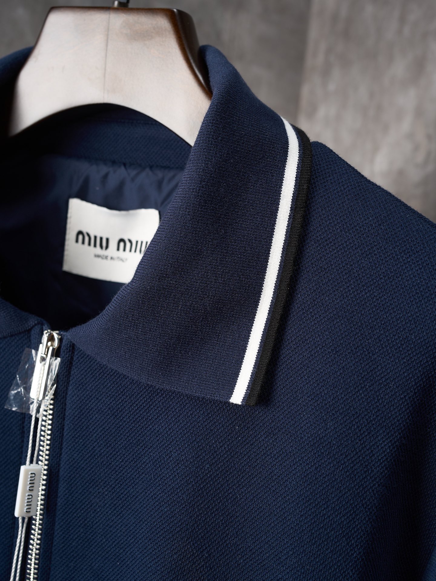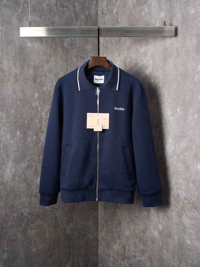 MIUMIU logo letter embroidery pique fabric lapel zipper