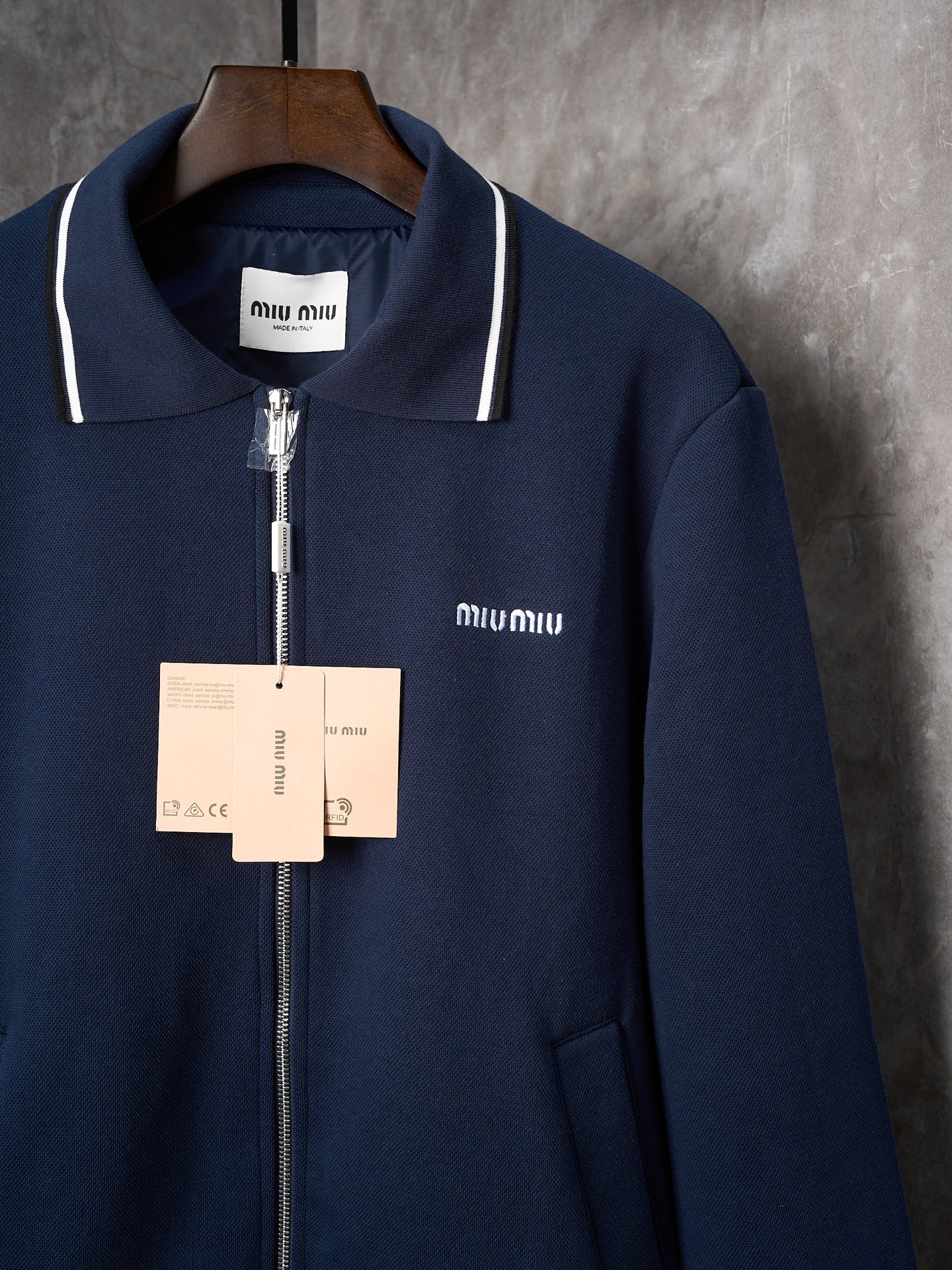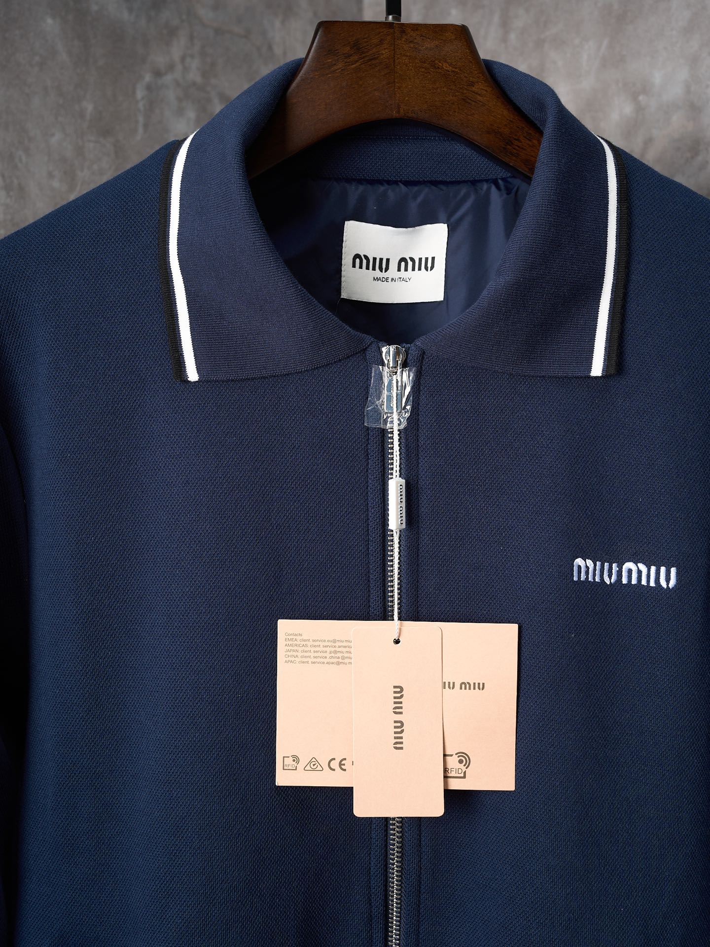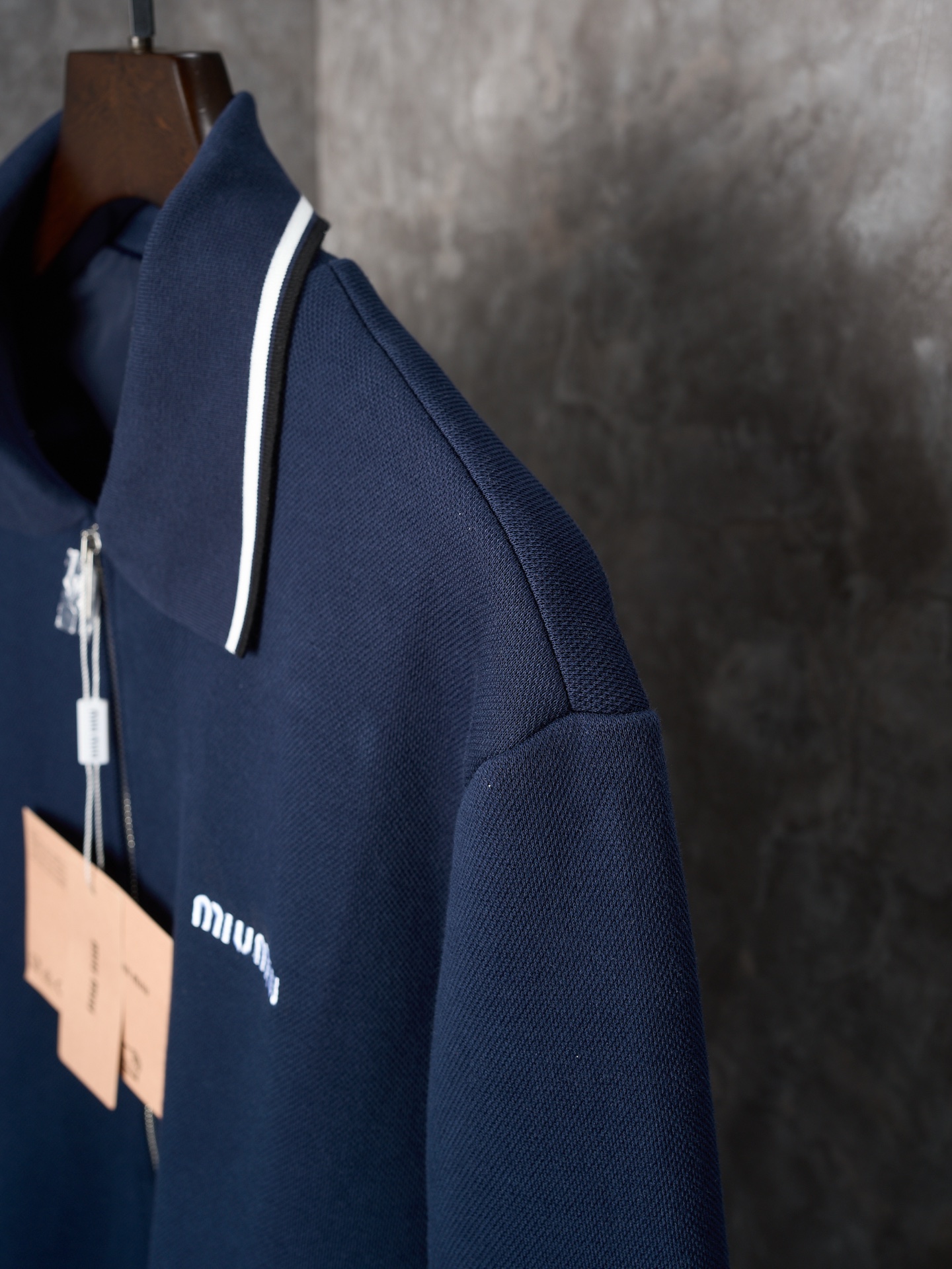 MIUMIU logo letter embroidery pique fabric lapel zipper