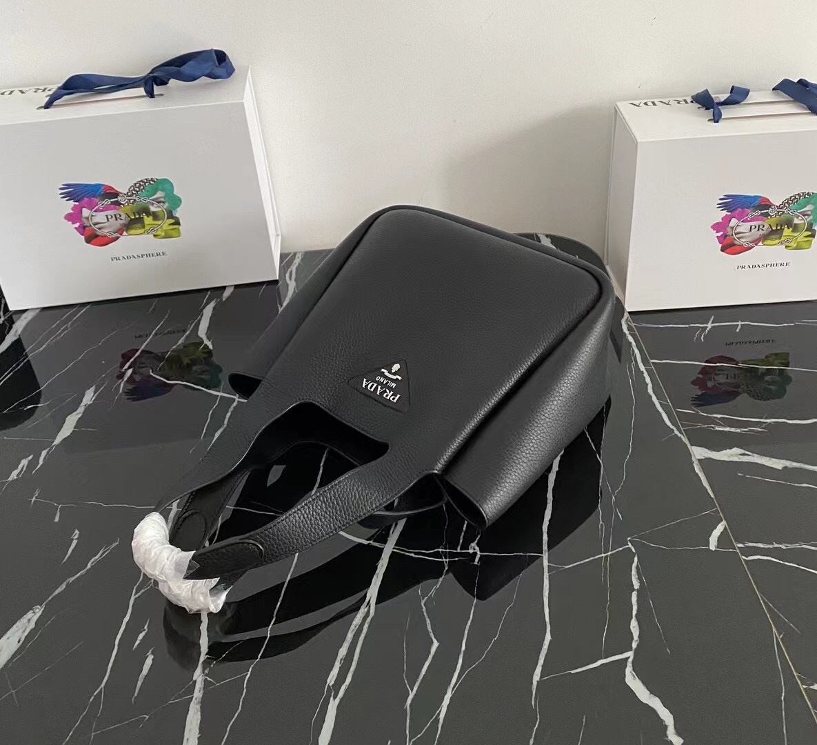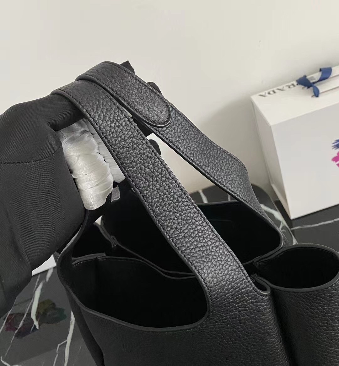 是第一个审查"Prada’s new basket bucket bag"