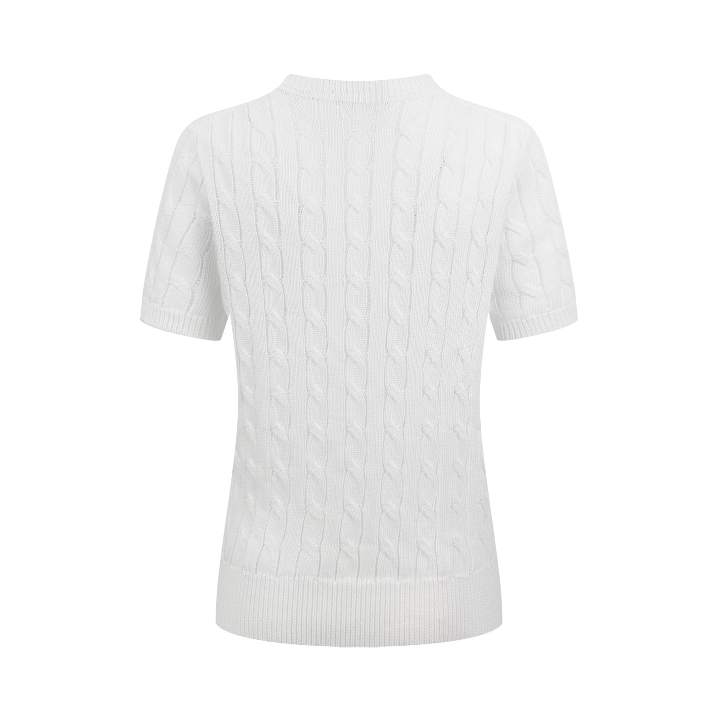 The classic cable knit is the core design element, with its neat and orderly arrangement adding a three-dimensional feel to the garment. A delicate pony logo adorns the body, exuding a lively and free spirit, ensuring high recognizability. The slightly lantern-style short sleeves with tapered cuffs flatter the arms, creating a slimming effect when still and a dynamic look when in motion, effortlessly achieving a relaxed everyday feel.