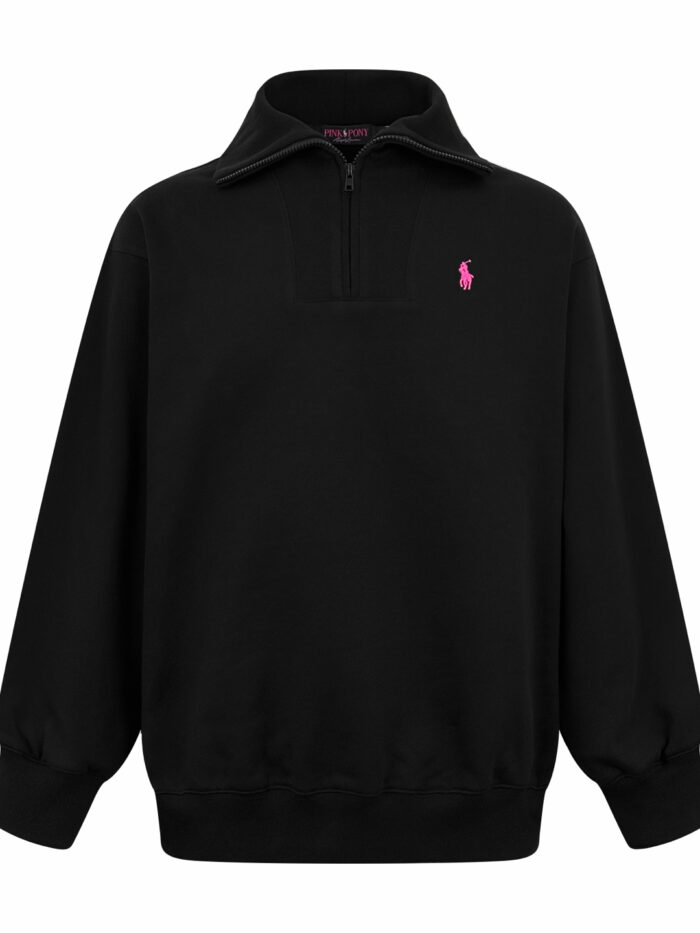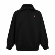 This luxurious cotton-fleece composite fabric is soft, silky, and comfortable against the skin. Set against a pure, deep black background, a touch of pink pony embroidery adorns the chest, understated yet powerful. The back is decorated with ivory satin inlay outlining the brand’s lettering. The centrally positioned pink pony embroidery is the only splash of color in this black-and-white silent film, subtly reflecting the brand’s elegant and unrestrained philosophy. Its unique ribbed mock neck design elevates the look, adding more flexibility and style, silently showcasing taste and elegance.