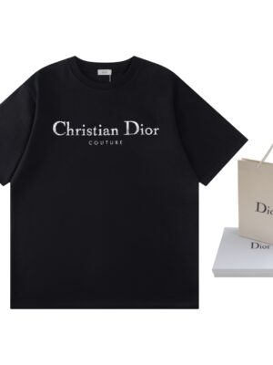 DIOR 2026 Summer Gradient Toothbrush Embroidered Letter Unisex 100% Cotton Crew Neck Short Sleeve T-Shirt
